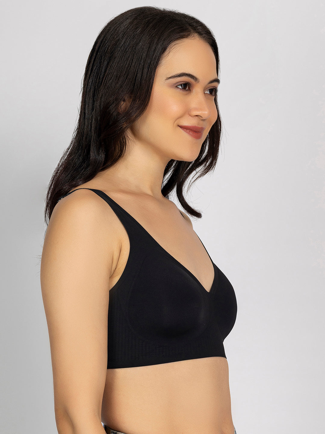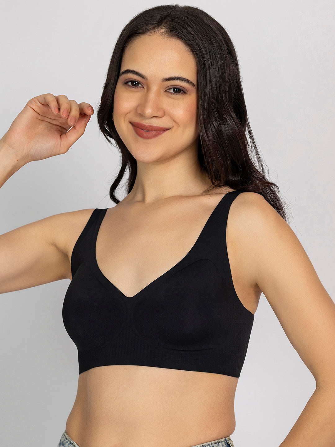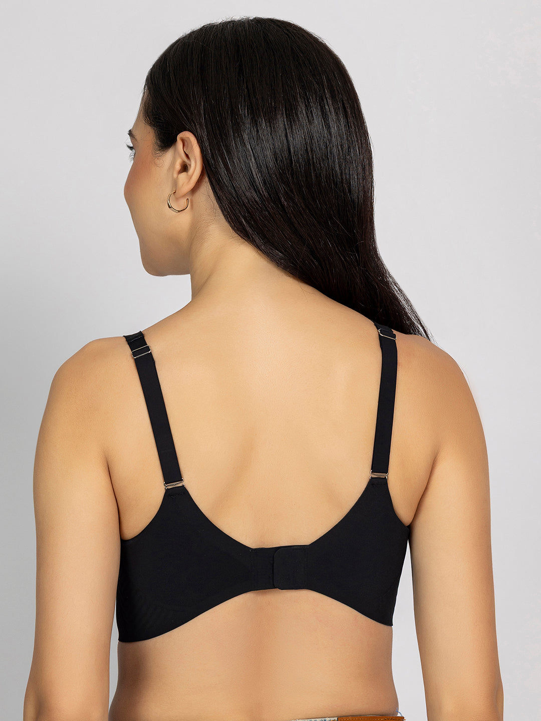 This bra is designed to give you smooth comfort with a clean, seamless look. Made from soft polyamide fabric, it features padded cups and a non-wired finish that provides a natural lift without compromising on comfort. The U-back design keeps the straps in place, while the hook-and-eye back closure offers an adjustable and secure fit. Lightweight, flexible, and perfect for everyday wear — it blends support with effortless ease.