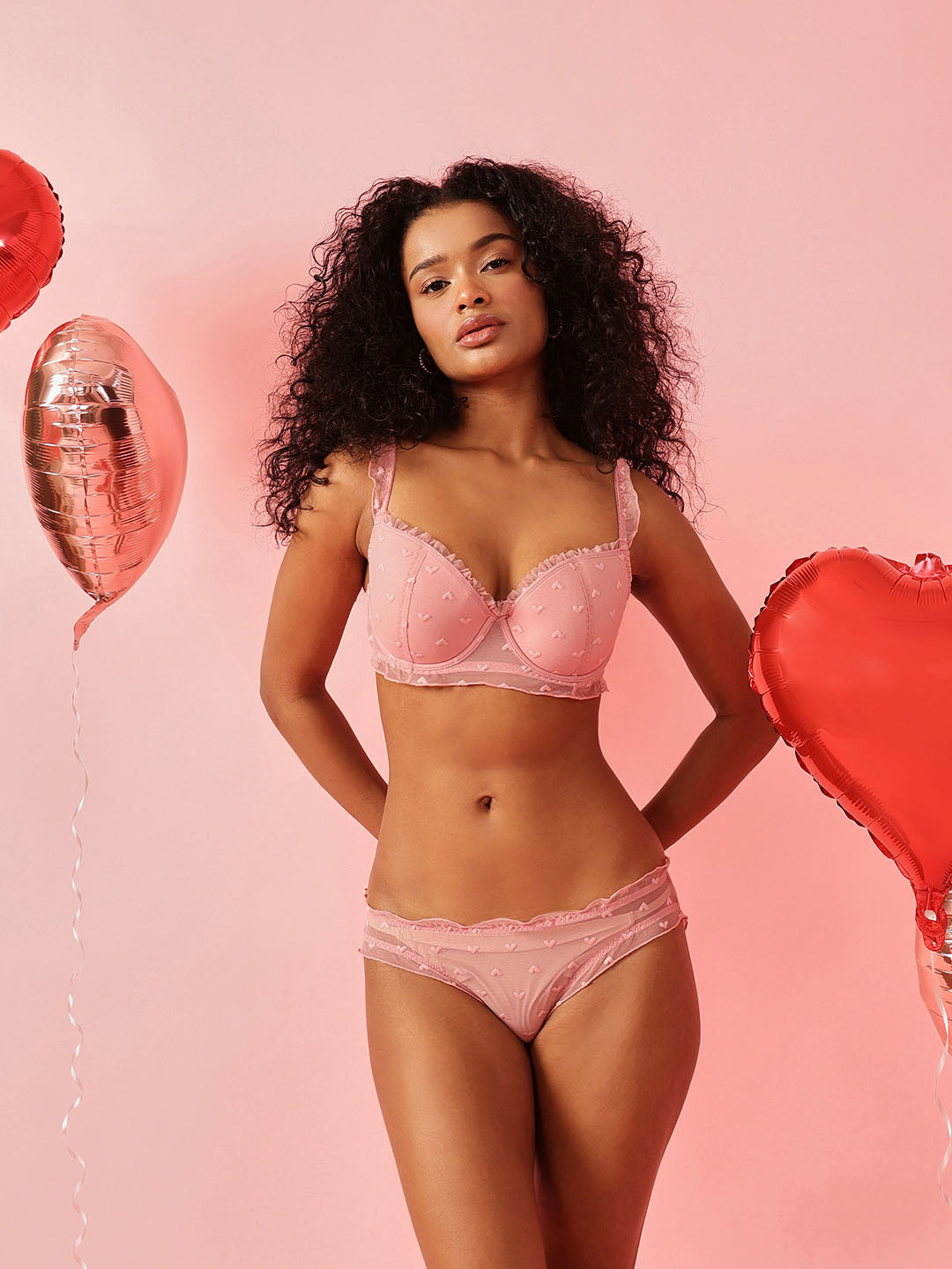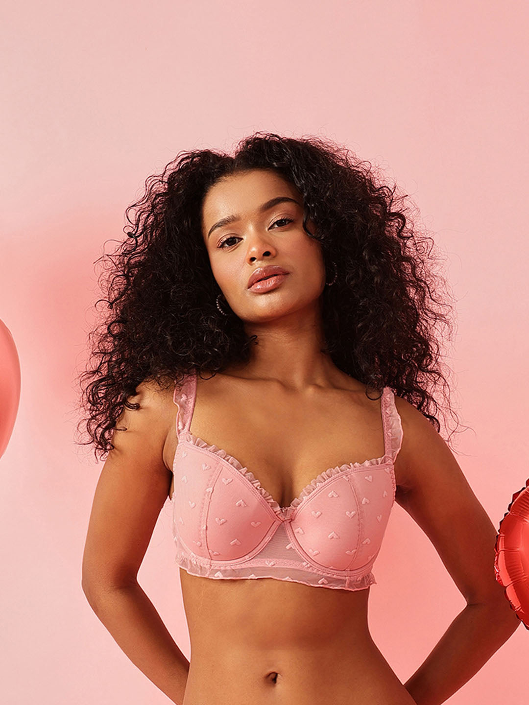 The bra features lightly padded underwired demi-coverage cups that offer gentle shaping and lift while maintaining a natural silhouette. Crafted in soft, cute mesh fabric and Delicate mesh ruffle detailing on the shoulder straps adds a feminine accent.
