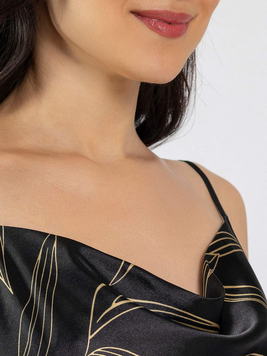 Black Floral Satin Cowl Neck Short Night Dress