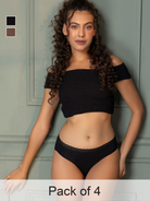 Pack of 4 Mid-Rise Bikini Briefs for Women – 2 Black & 2 Brown | Soft Modal Fabric & Outer Elastic Waistband