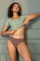 Pack of 6 Solid Mid-Rise Bikini Briefs for Women – 2 Black, 2 Light Brown & 2 Mint | Soft Modal Fabric & Outer Elastic Waistband