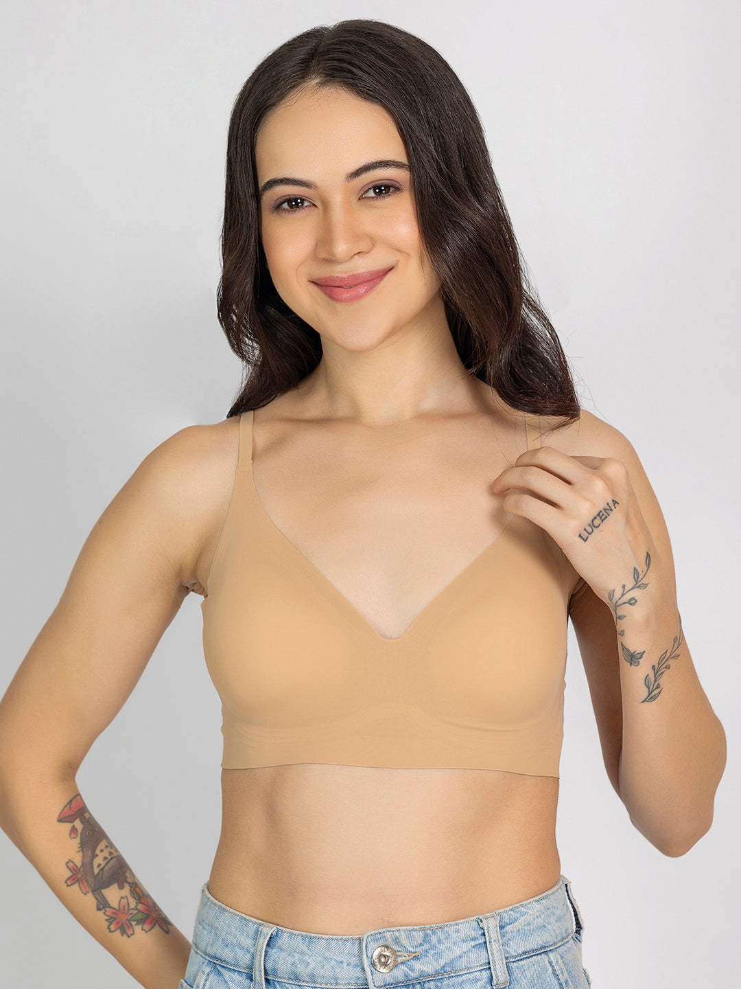 This bra is crafted to give you a perfectly smooth, invisible finish under any outfit. The Chelvet Black Seamless Bra features ultra-soft molded cups that shape naturally without adding bulk. Its supportive U-back keeps the straps from slipping, while the slip-on style makes it effortless to wear — no hooks, no adjustments. Designed with padded, non-wired comfort, it offers gentle support and a lightweight feel, making it ideal for everyday wear.