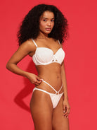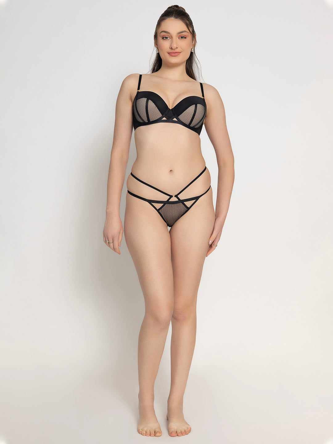 The bra features padded underwired demi cups that provide enhanced lift, shape, and support, while the PowerMesh detailing adds a sheer, modern touch. Adjustable shoulder straps ensure a customized and comfortable fit.Paired with a matching panty, the set is finished with delicate mesh panels and a flattering cut that enhances the silhouette while maintaining comfort.