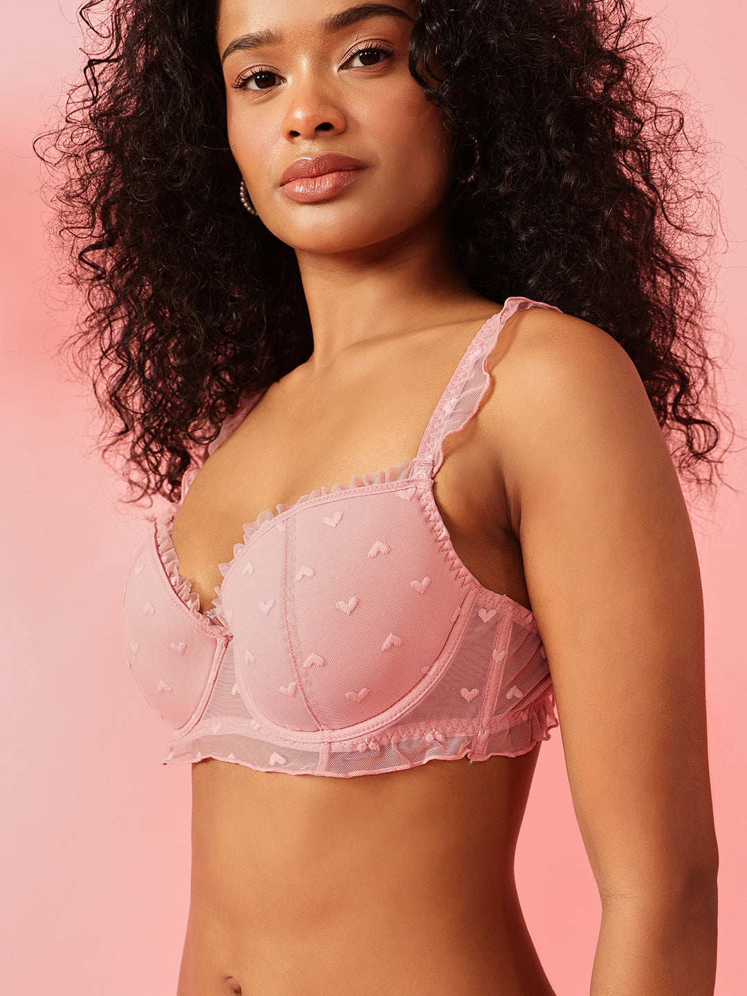 The bra features lightly padded underwired demi-coverage cups that offer gentle shaping and lift while maintaining a natural silhouette. Crafted in soft, cute mesh fabric and Delicate mesh ruffle detailing on the shoulder straps adds a feminine accent. Comes with matching mesh panty completes the set with coordinated styling and all-day comfort.