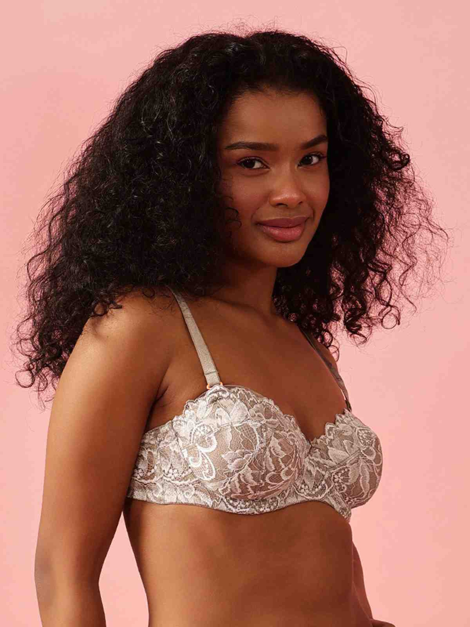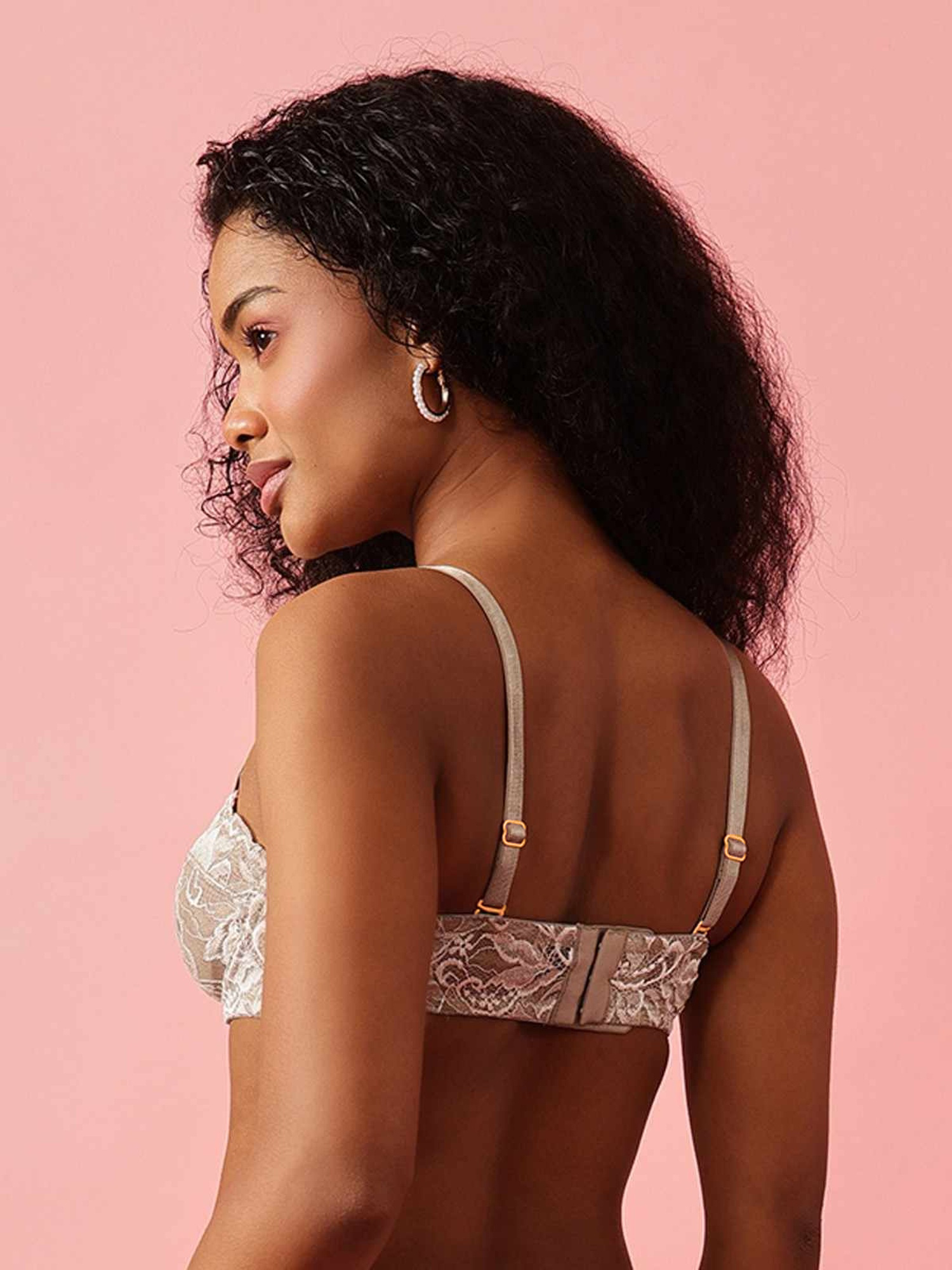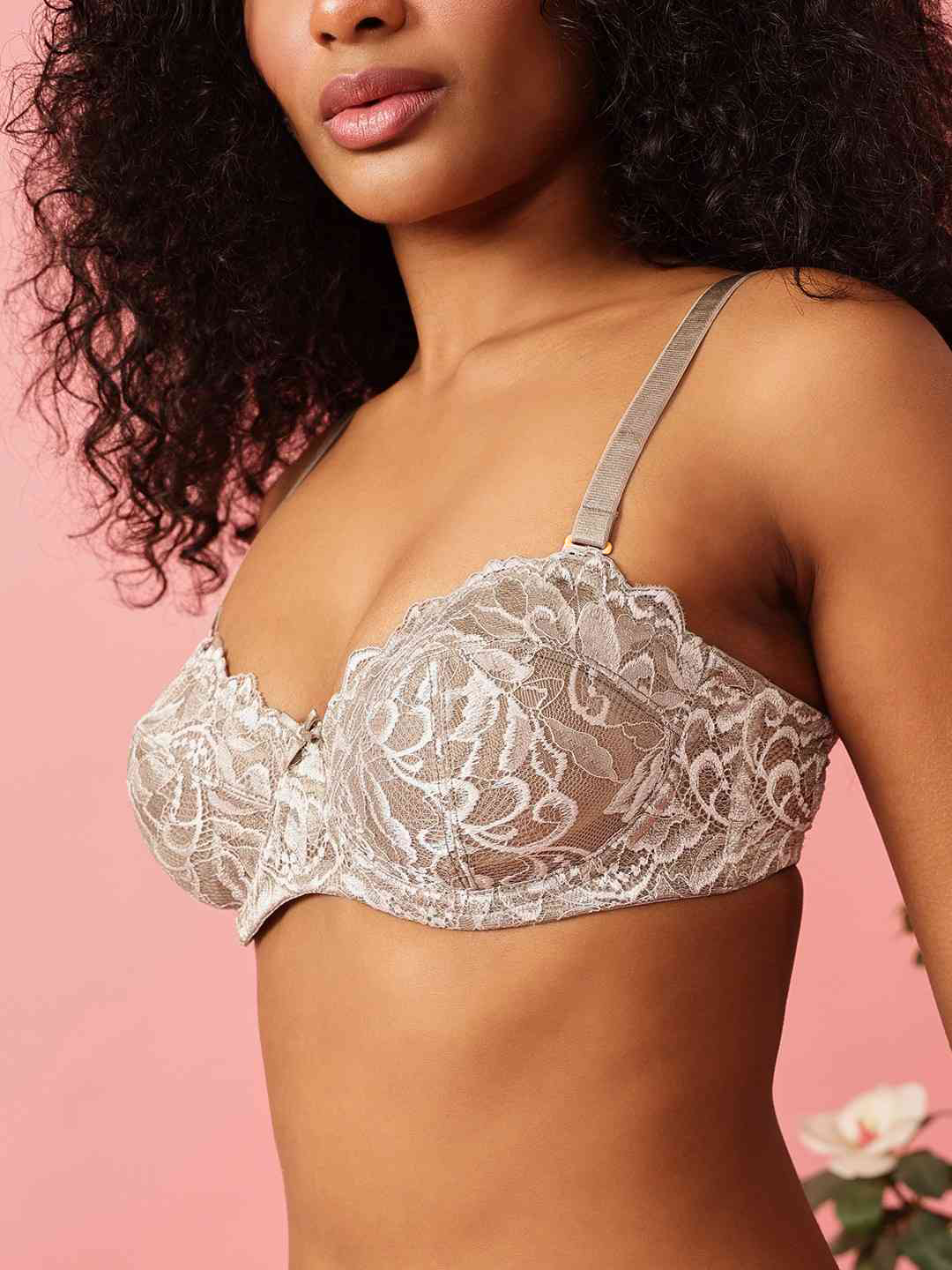 This non-padded underwired bralette is crafted in soft lace with a subtle self design for a refined look. Featuring full coverage cups and an underwired construction, it provides reliable support and shape. The broad side wings offer better hold and coverage, while the 3-pin hook-and-eye back closure ensures a secure and adjustable fit.
