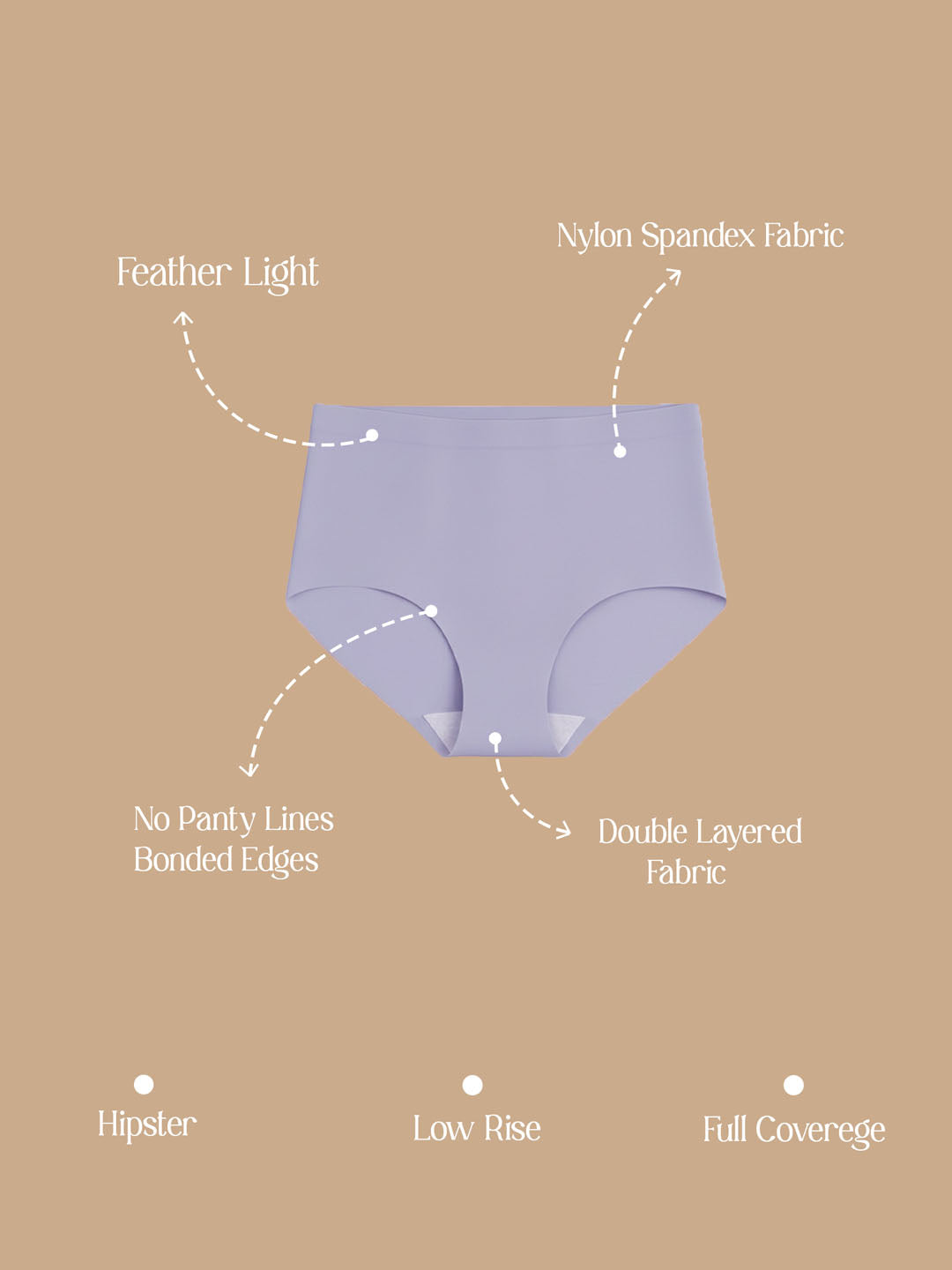 Redefine everyday comfort with this Pack of 2 Seamless Hipster Panties, two soft Lilac pair designed to feel weightless on the skin while delivering a smooth, invisible fit. Made with ultra-soft nylon spandex fabric and finished with bonded waist and leg openings, these panties offer all-day comfort with zero panty lines and also featuring Low Rise | Mid Rear Coverage | Feather-Light Comfort .