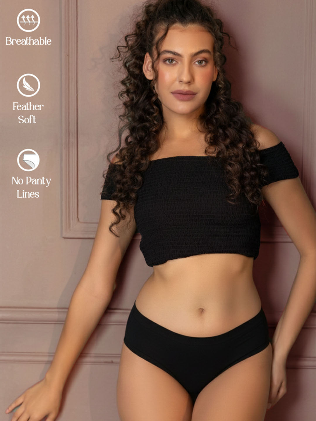 Redefine everyday comfort with this Pack of 3 Seamless Hipster Panties, two soft Lilac and one classic Black pair designed to feel weightless on the skin while delivering a smooth, invisible fit. Made with ultra-soft nylon spandex fabric and finished with bonded waist and leg openings, these panties offer all-day comfort with zero panty lines and also featuring Low Rise | Mid Rear Coverage | Feather-Light Comfort .