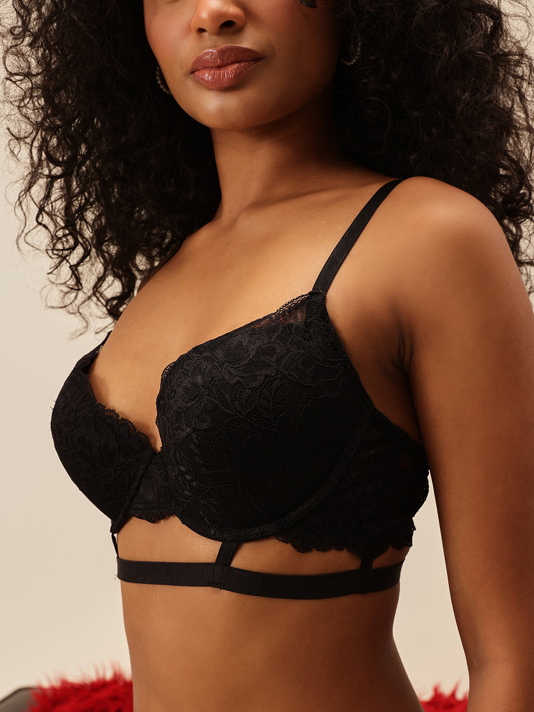The bra features padded underwired cups that provide enhanced lift and shaping while offering 3/4th coverage for a secure and flattering fit. Crafted in delicate lace fabric, it delivers a soft, feminine look with everyday comfort. The elasticated waist detailing ensures flexibility and ease of movement comes with matching panty, designed in coordinating lace, completes the set with a comfortable silhouette and a smooth finish.