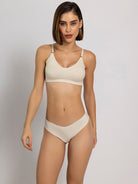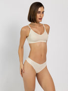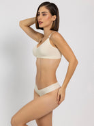 Experience all-day comfort with this seamless lingerie set. Features a low-rise bikini with minimal coverage and a full-coverage V neck  bra. Perfect for everyday wear.
