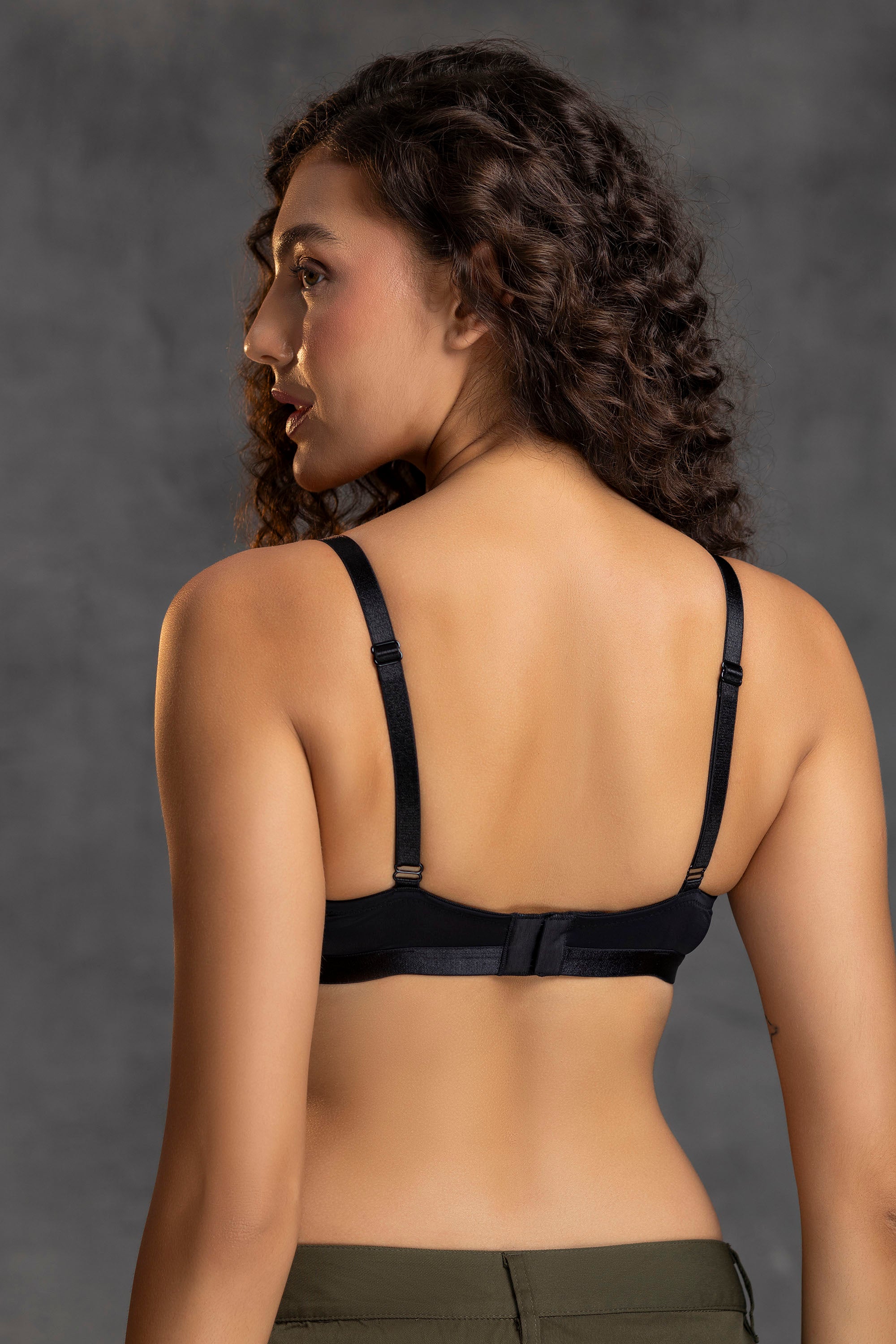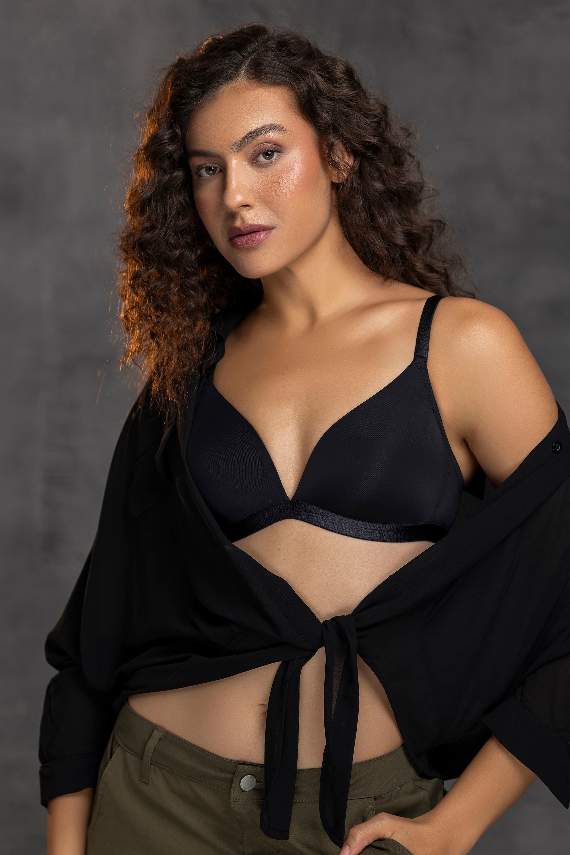 Key Features:- Non-Wired, Regular Straps, 90% Nylon 10% Spandex, Plunge Bra, Solid, Seamed Cups, Padded Bra, 3/4 Coverage, Straight Back |