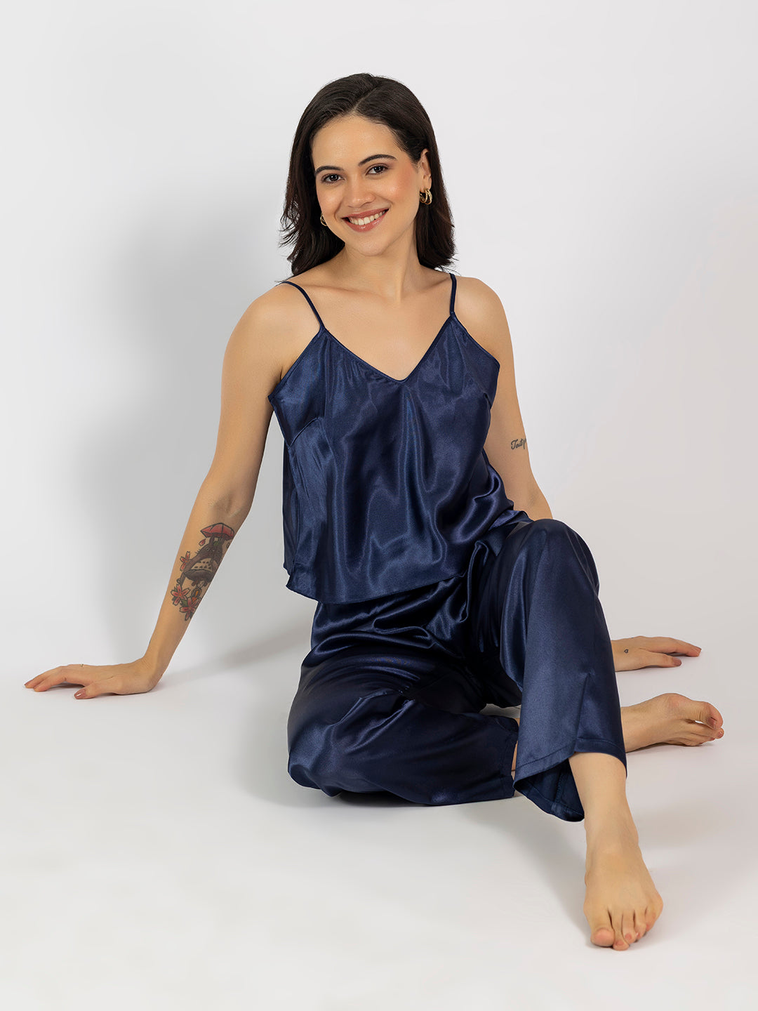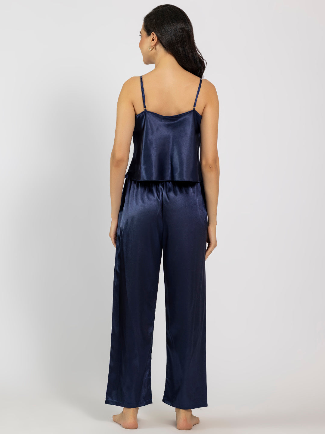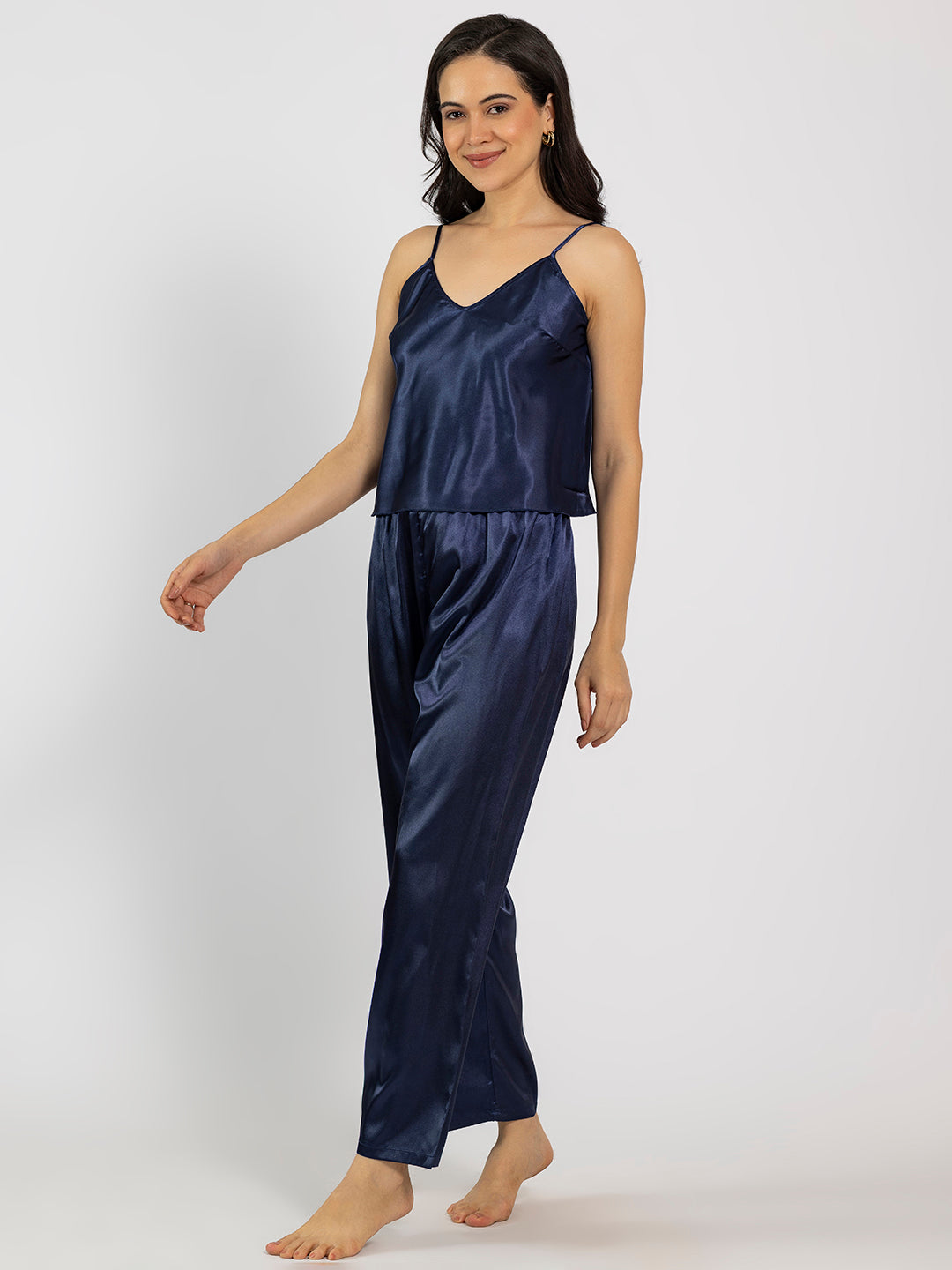 Navy Blue Satin Camisole & Pajama Set