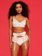 The bra features non-padded underwired cups offering 3/4th coverage for reliable support and a flattering fit without added bulk. Crafted in delicate lace with Power Mesh panels, it ensures breathability while enhancing the overall silhouette paired with a matching panty, designed in lace and Power Mesh, this set offers comfortable coverage with a smooth, stylish finish.