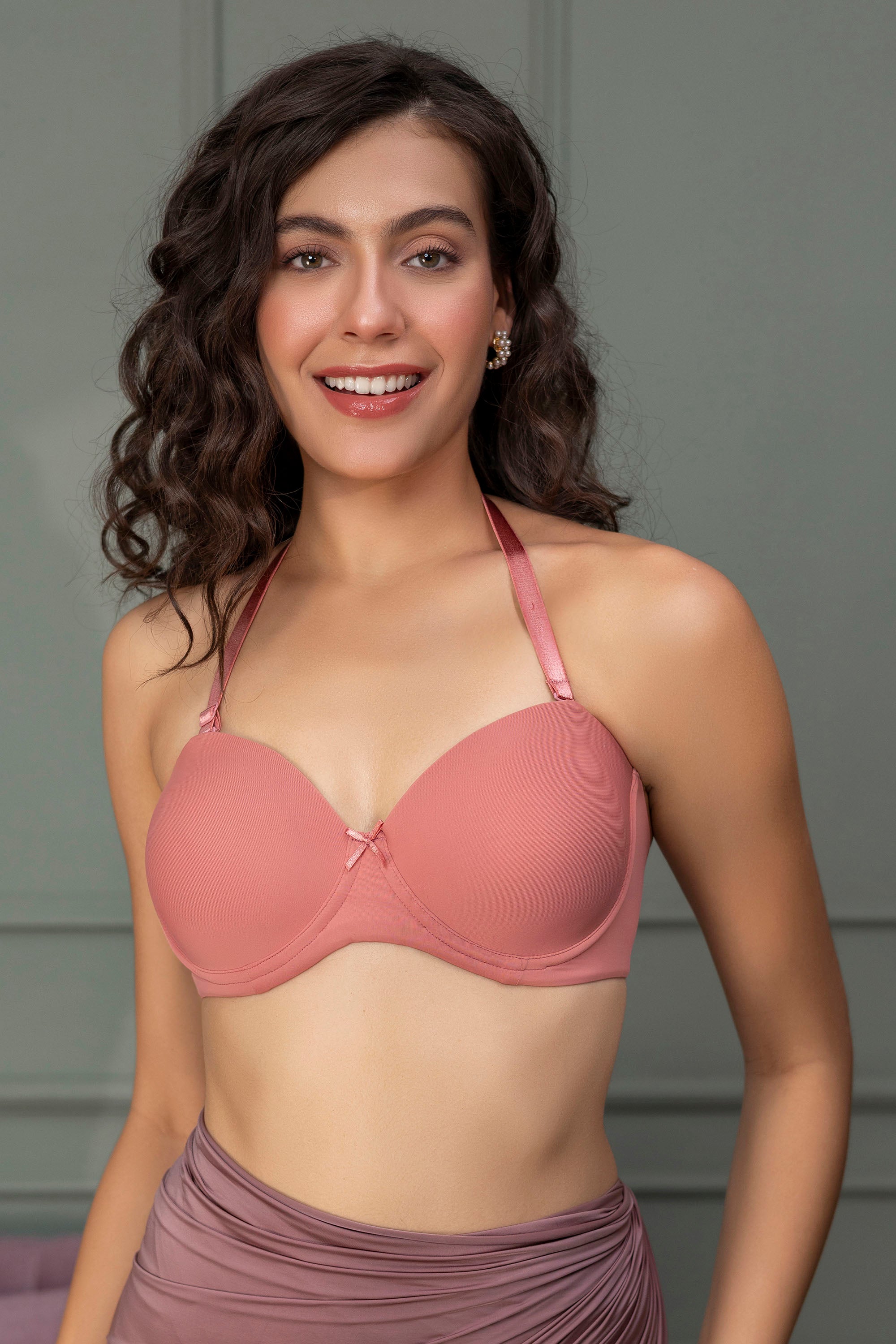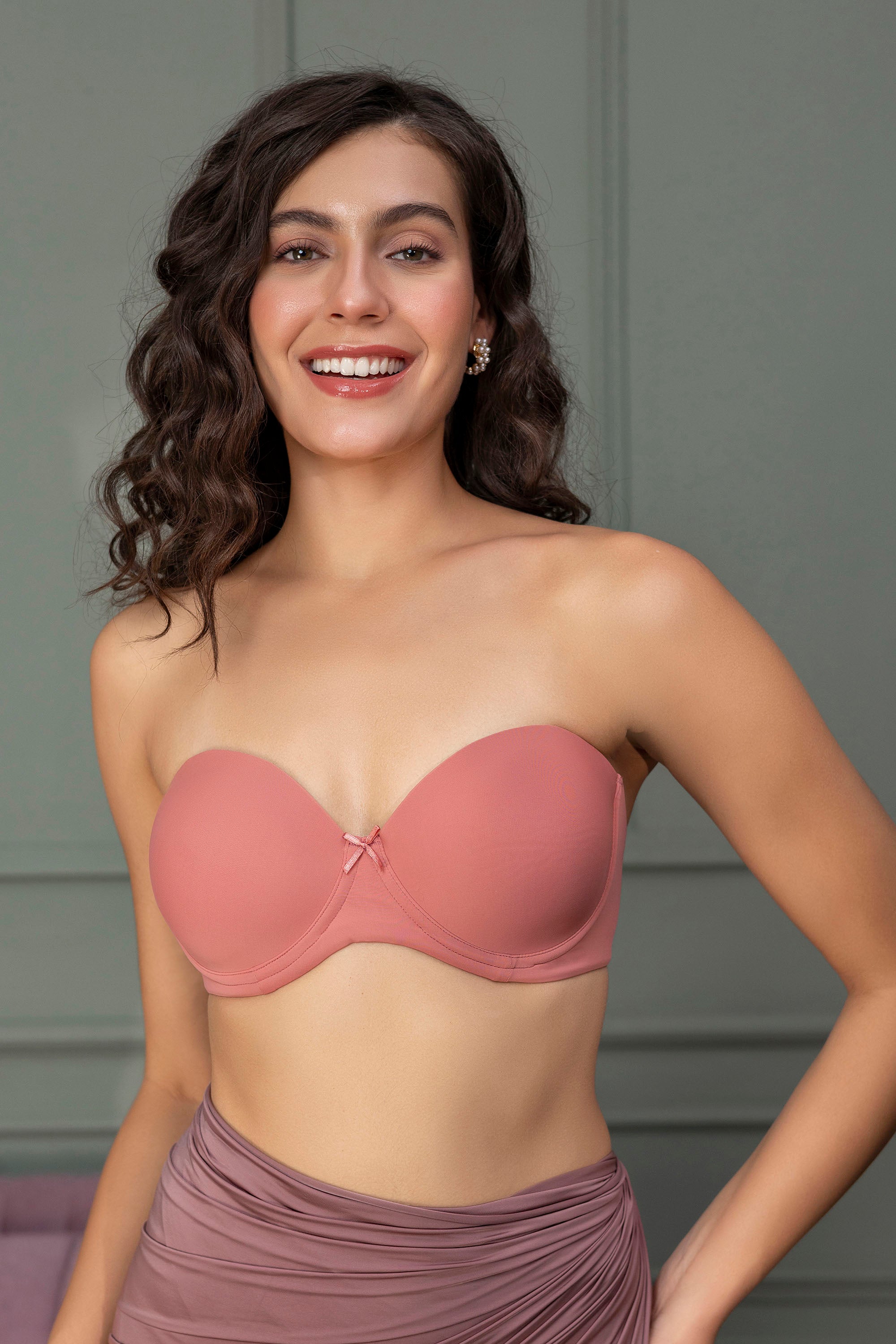 Experience confident support and effortless style with this strapless wired balconette bra, designed to stay perfectly in place. The silicon taping along the inside neckline ensures a secure, slip-free fit, while the satin-finish adjustable multiway straps offer versatile styling options-wear it strapless, halter, cross-back, or one-shoulder. Finished with a two hook-and-eye closure for a comfortable and secure hold, this bra delivers both sophistication and stability for any occasion.