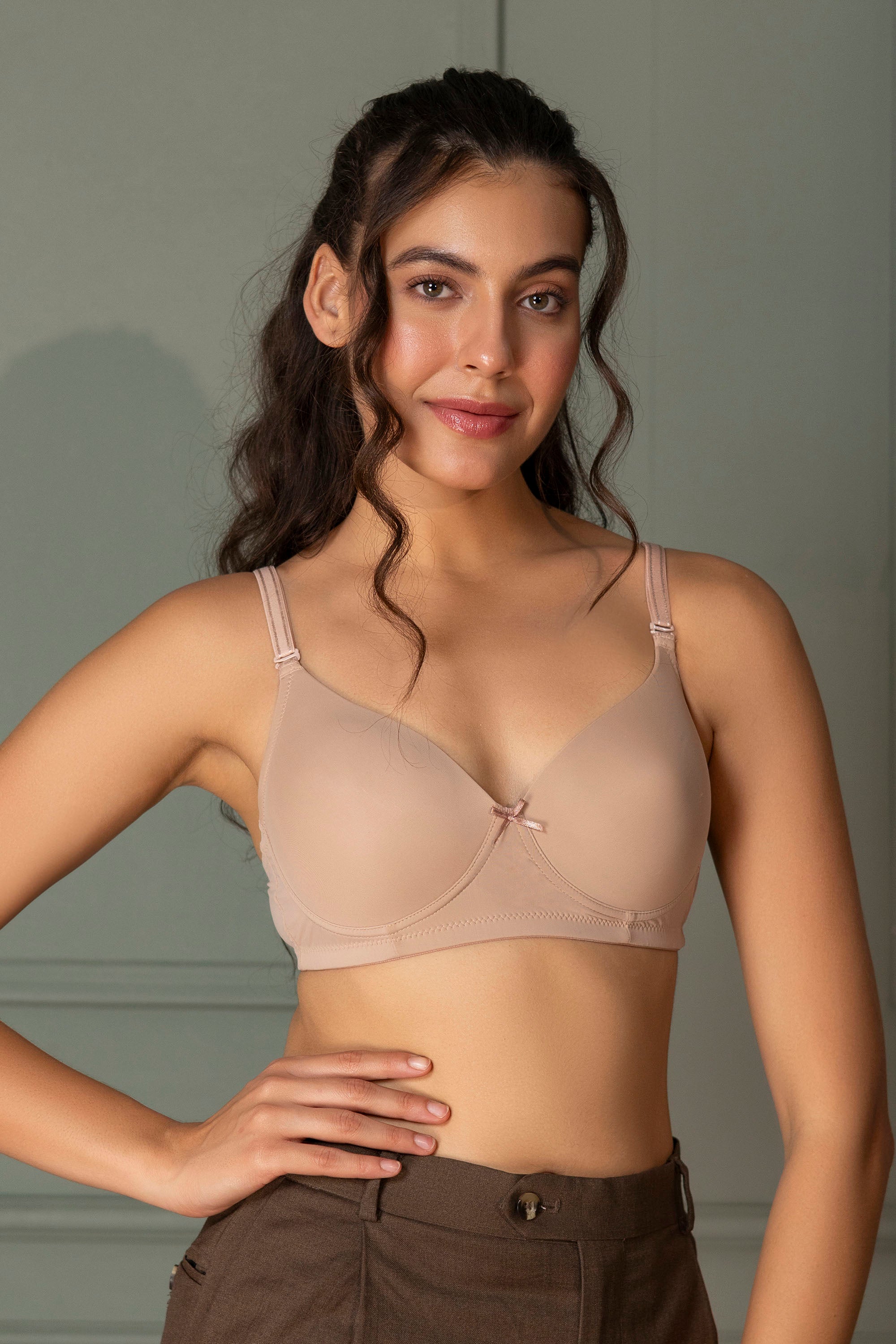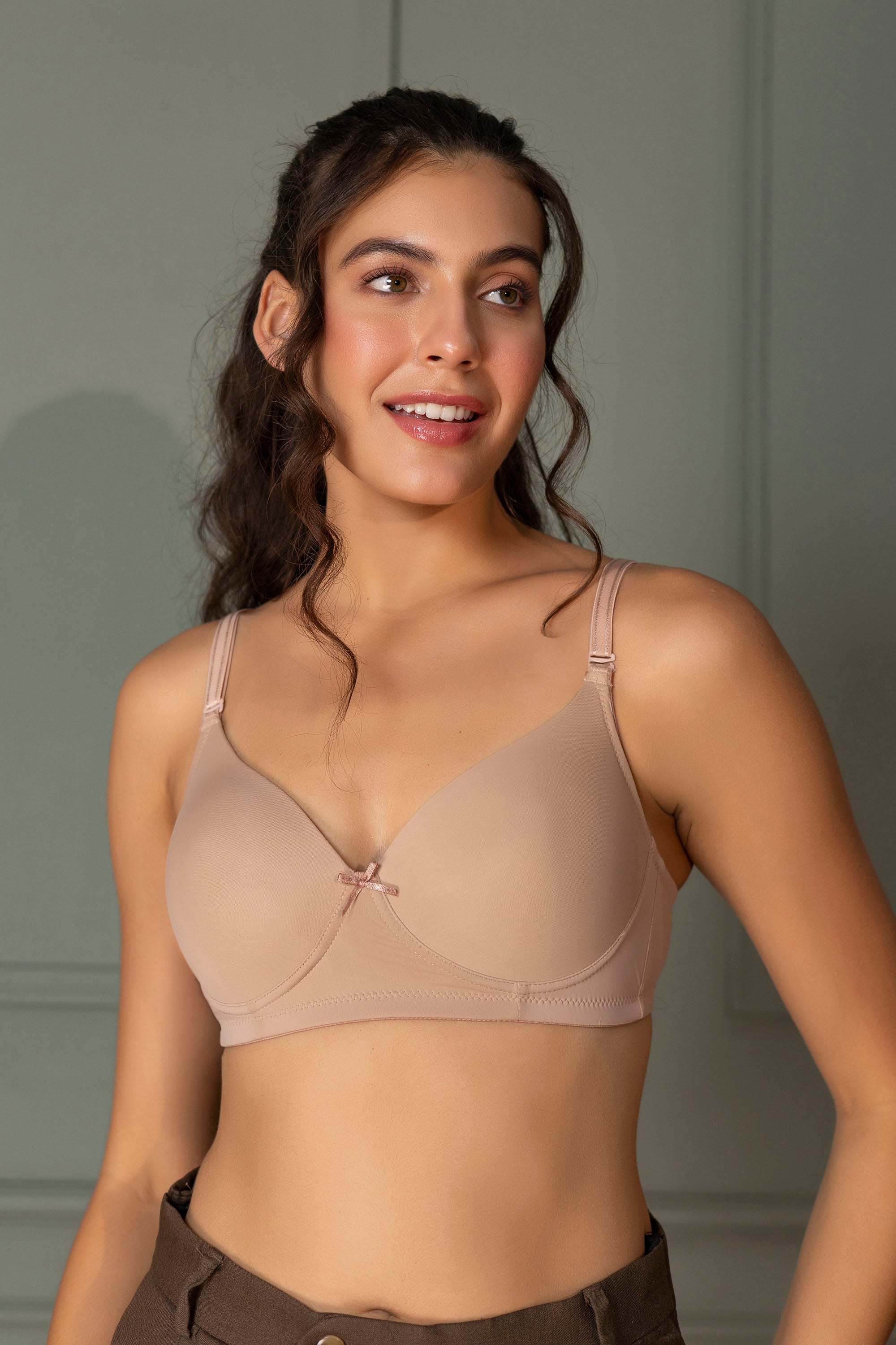 Key Features:- Non-Wired, Regular Straps, 90% Nylon 10% Spandex, T-Shirt Bra, Solid, Detachable Straps, Seamed Cups, Padded Bra, Full Coverage, Straight Back |
