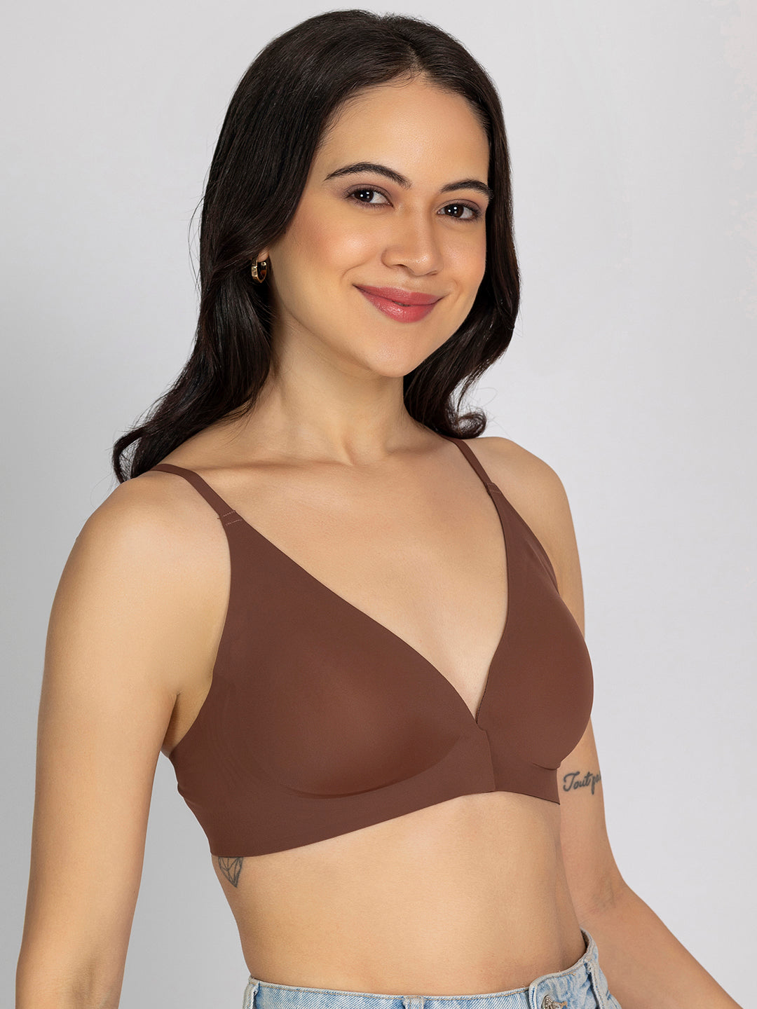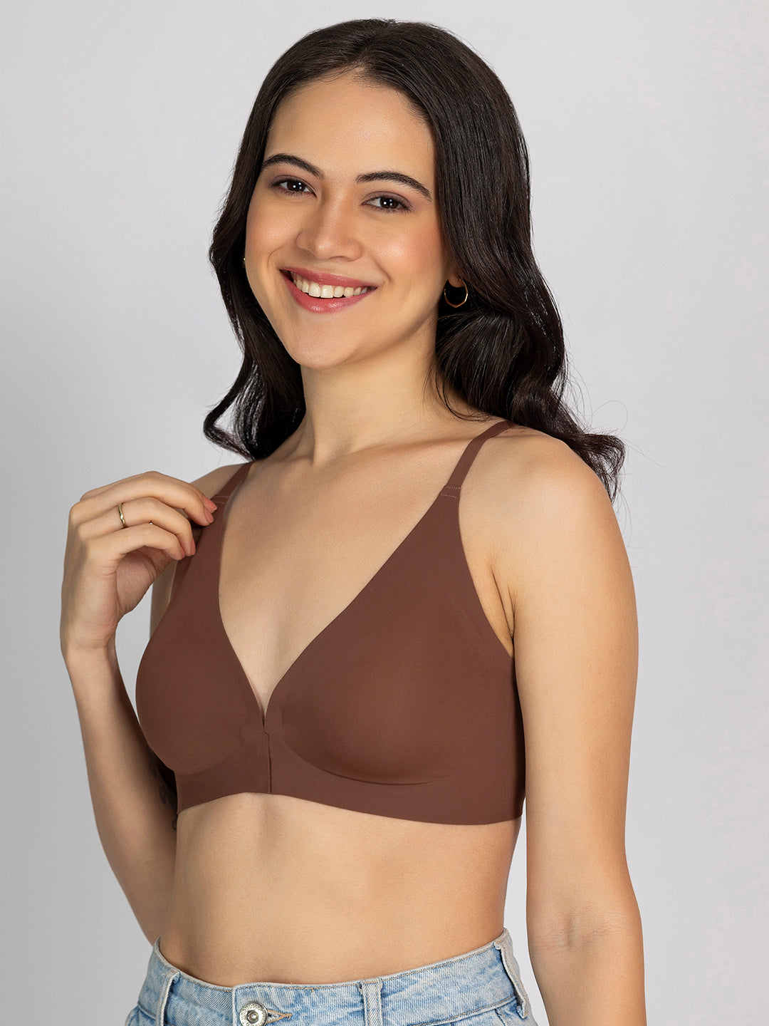 Chelvet Brown Seamless Padded Front-Closure Bra