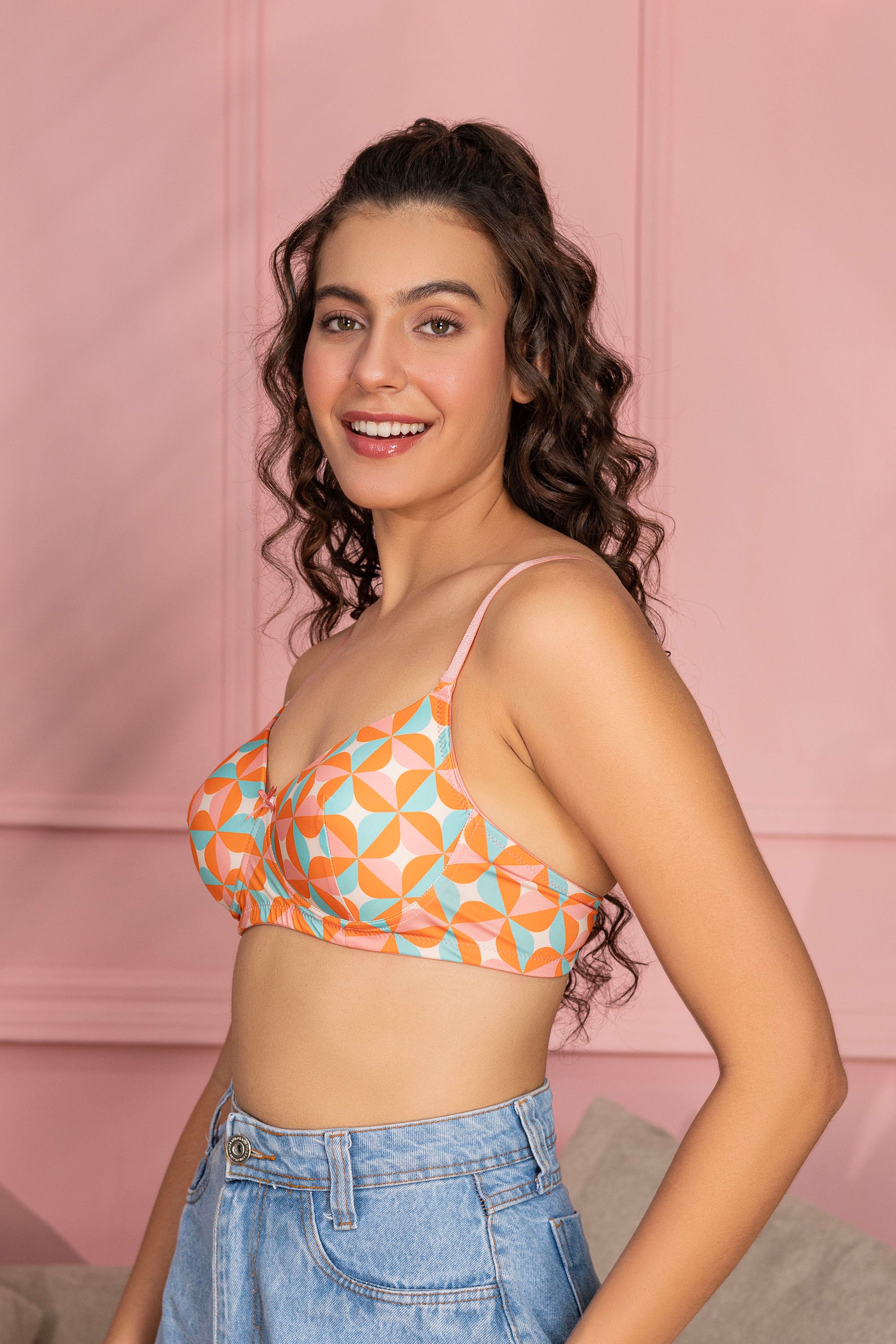 Key Features:- Non-Wired, Regular Straps, 90% Nylon 10% Spandex, T-Shirt Bra,Floral Printed, Seamed Cups, Padded Bra, Full Coverage, Straight Back |