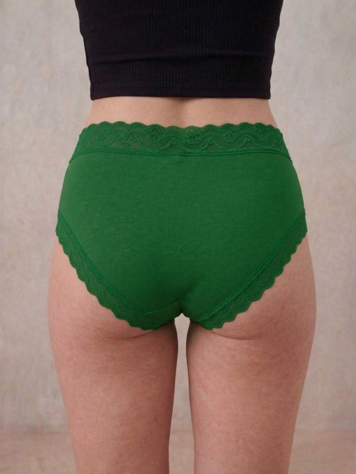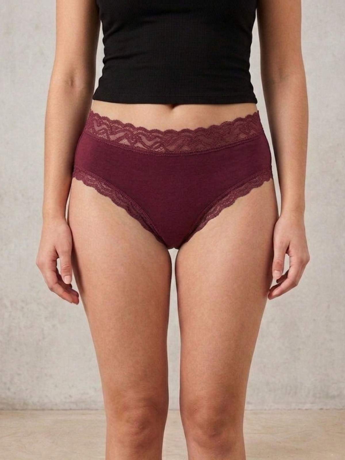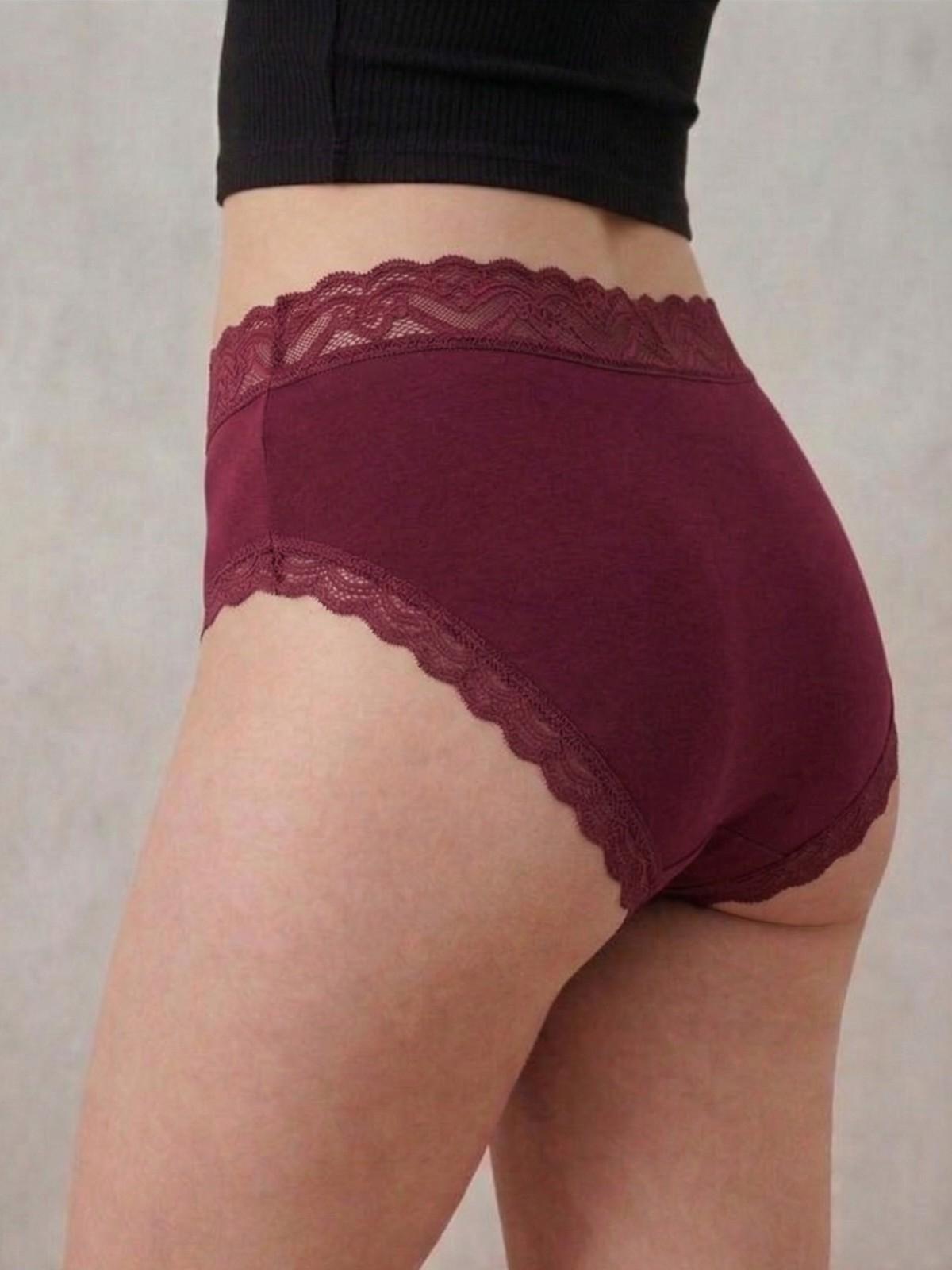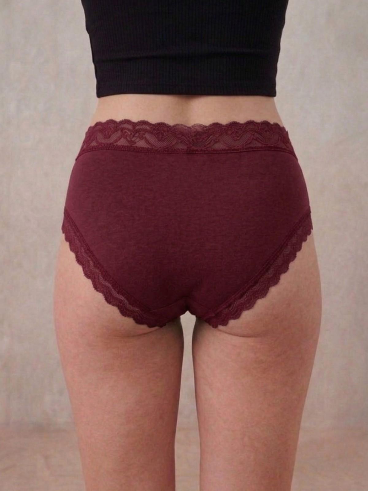 Key Features:- Fabric:- Cotton Spandex, Fit:- Mid-Hipster, Rise:- Mid-Rise, Stretch:- Stretchable, Waistband:- Soft Elasticated, Coverage:- Moderate, Design:- Solid with Lace Detail, Lace Detailing at back leg openings. |