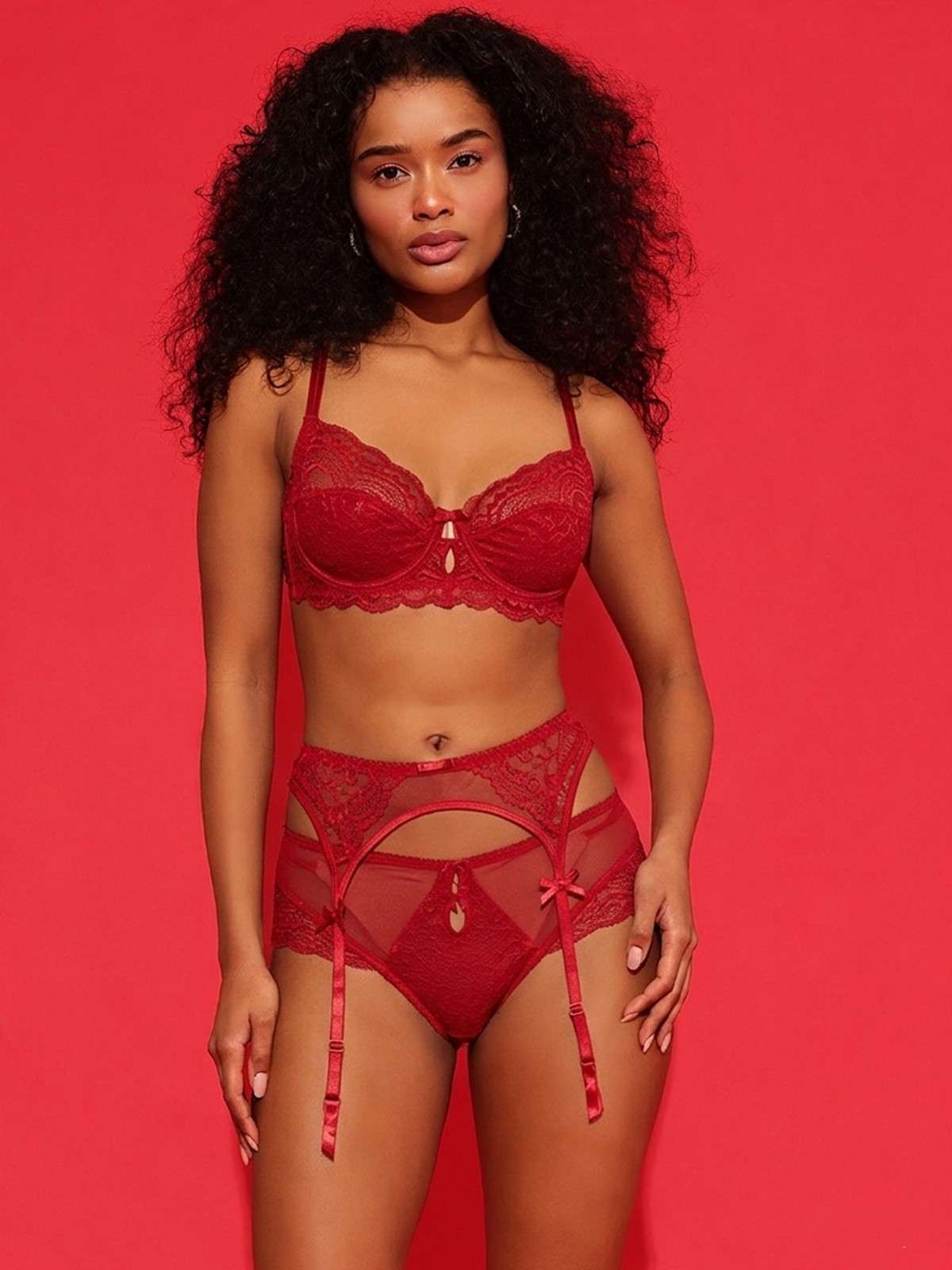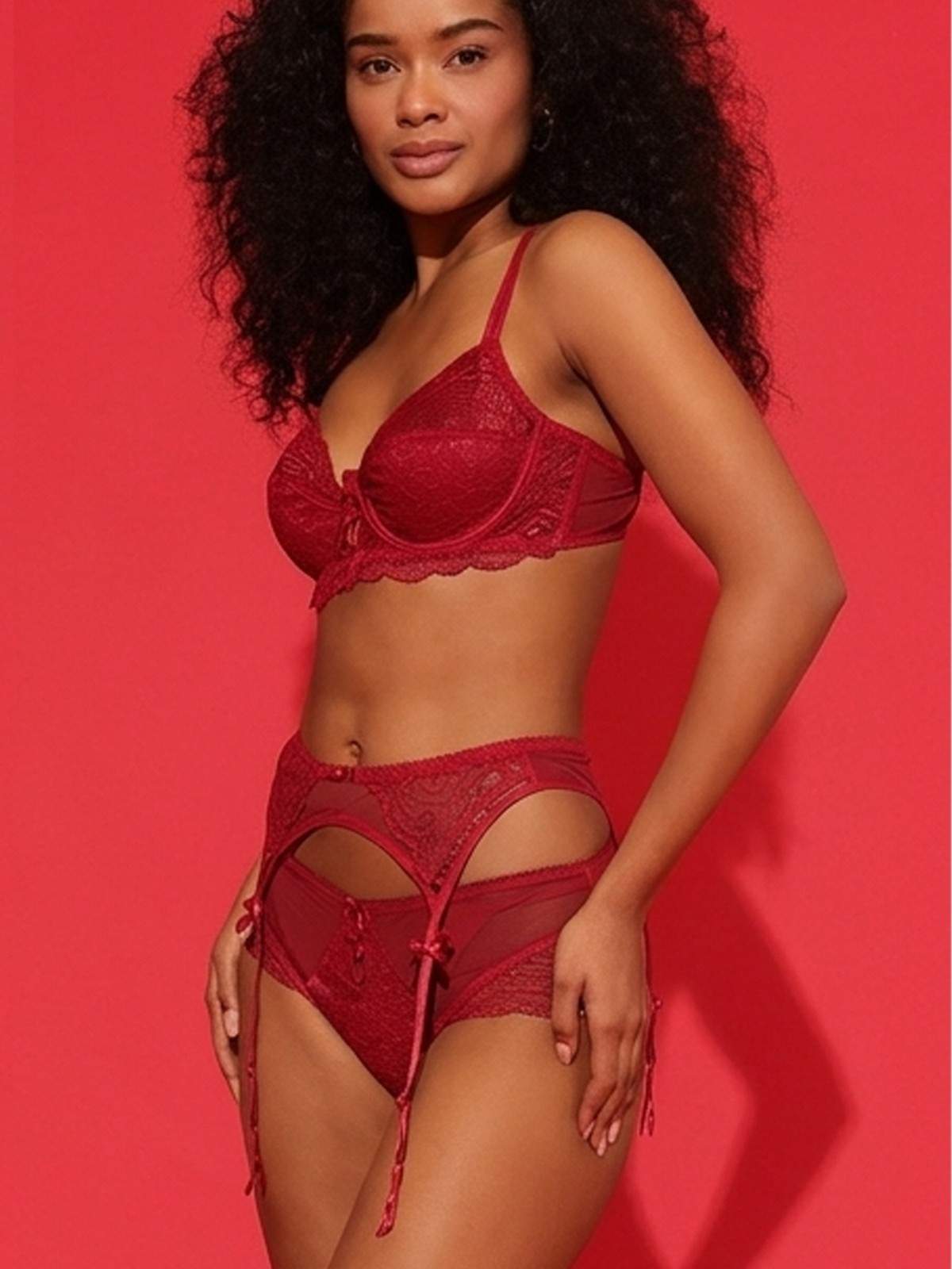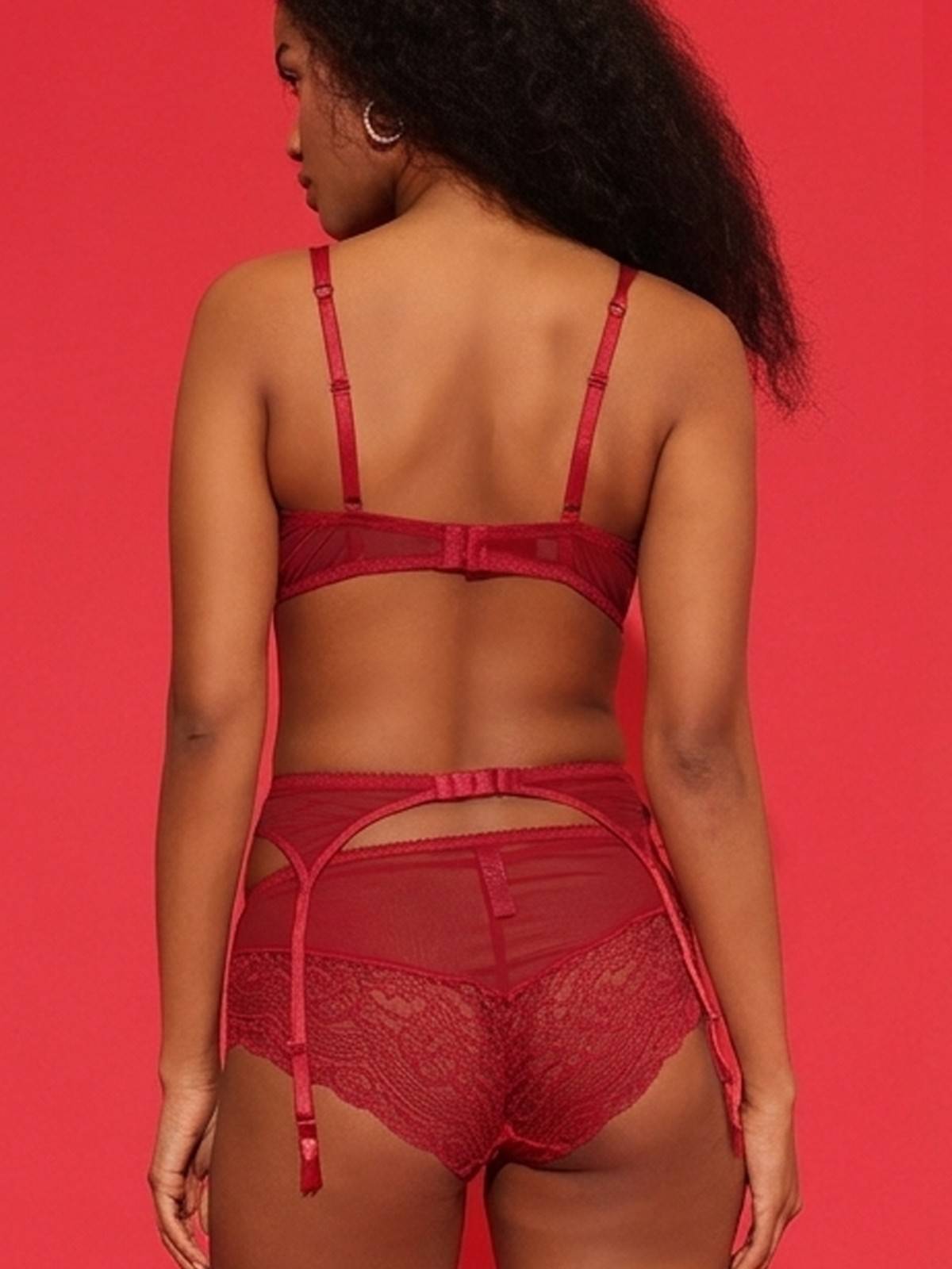 Red Lace Garter Belt with Sheer Panels