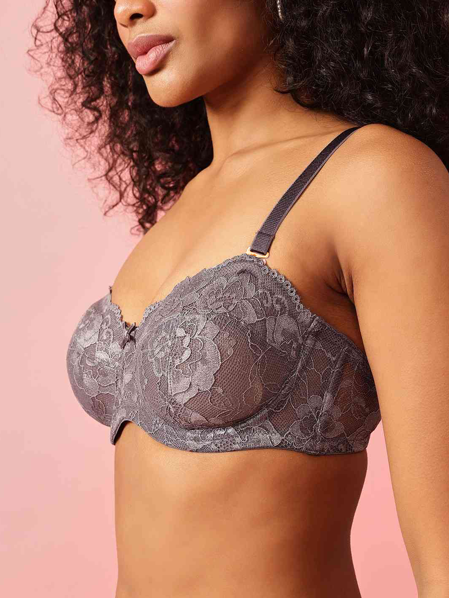This non-padded underwired bralette is crafted in soft lace with a subtle self design for a refined look. Featuring full coverage cups and an underwired construction, it provides reliable support and shape. The broad side wings offer better hold and coverage, while the 3-pin hook-and-eye back closure ensures a secure and adjustable fit.